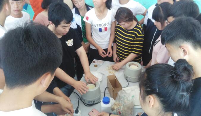雖然第一次見(jiàn)到方闊老師,但是方老師親切和藹的態(tài)度,幽默風(fēng)趣的講解,一下子吸引住大家。在紫云膏的制作過(guò)程中,方老師不厭其煩的反復(fù)講解制作工藝的關(guān)鍵點(diǎn),細(xì)致耐心的解答每個(gè)同學(xué)提出的問(wèn)題。在大家掌握好制作要點(diǎn)之后,開(kāi)始進(jìn)行批量生產(chǎn),最終,一批顏色精美,質(zhì)地優(yōu)良的紫云膏生產(chǎn)出來(lái)了。大家在手機(jī)淘寶上對(duì)比了淘寶網(wǎng)站出售的紫云膏,無(wú)論色澤,質(zhì)地都可以與之媲美。大家計(jì)算一下,這批紫云膏共70瓶,按淘寶網(wǎng)平均20元一瓶來(lái)算,共計(jì)1400元??!