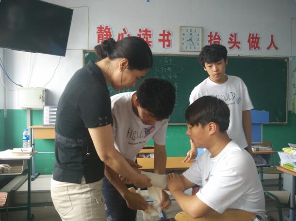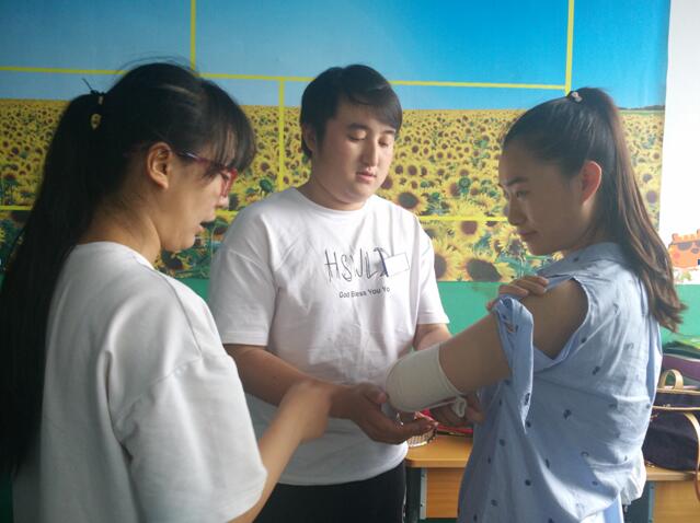 陳老師主教急救、傳染兩門課程,周一和周五上午都是這個老師上課。周一,當(dāng)我們下去升國旗的時候,就看見門外有個熟悉的身影,那一定就是我們的陳老師。陳老師上課的時候,非常喜歡和我們互動,例如:三角巾的用法。老師會每個人發(fā)個三角巾,耐心地教我們使用的方法,用完再疊好放回去,等待下一次使用。還有教我們用三角巾包頭,同學(xué)們兩人一組,輪番給對方包頭。還有教我們總總使用三角巾的方法。各種急救方法,讓我們獲益匪淺。我們的陳老師很耐心、細(xì)心。我們很喜歡這個陳老師。(指導(dǎo)教師:盧旭)