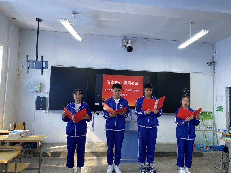 團(tuán)員代表深情朗誦共青團(tuán)員和少先隊(duì)員代表在慶祝中國(guó)共產(chǎn)黨成立100周年大會(huì)上的集體致獻(xiàn)詞,唱響“請(qǐng)黨放心,強(qiáng)國(guó)有我”的青春強(qiáng)音。