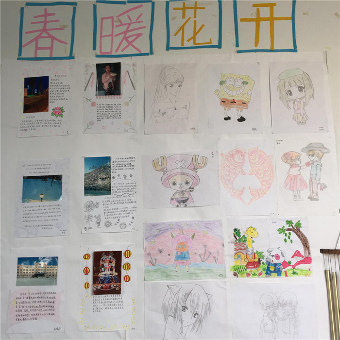 本學(xué)期開學(xué)初,為了豐富同學(xué)們的業(yè)余生活,更好的展現(xiàn)個(gè)人特長(zhǎng),學(xué)校要求每個(gè)班級(jí)將假期布置的作業(yè)以文化展評(píng)的形式展出并進(jìn)行評(píng)比。此項(xiàng)活動(dòng)極大的激發(fā)了同學(xué)們的熱情,紛紛上交自己滿意的作品。在本次文化作品展評(píng)中,我們13級(jí)1班以“春暖花開”為主題,共展出優(yōu)秀作品100余件。其中許多優(yōu)秀作品受到了學(xué)校師生的好評(píng)。