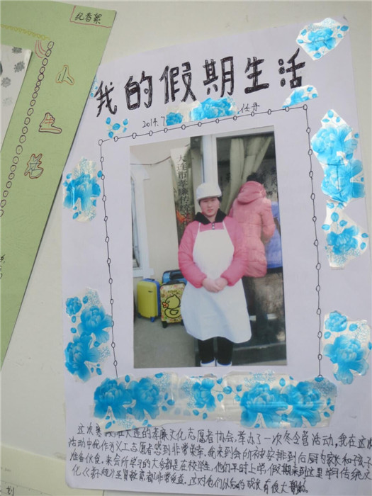 4月初,我校學(xué)生科于上個(gè)寒假給全校學(xué)生布置的有關(guān)“我的假期生活”主題作業(yè)已陸續(xù)展示于各班級(jí)走廊內(nèi)。作業(yè)要求將學(xué)生自己假期參與的有意義的實(shí)踐活動(dòng),例如:自己下廚房、自己做家務(wù)、參與田間勞作、打工、參與醫(yī)院見(jiàn)習(xí)生活、旅游等,將這些有意義的瞬間或?qū)ψ约旱募亦l(xiāng)美麗景致、其樂(lè)融融節(jié)日一家親的家庭生活、辛勞養(yǎng)育自己的父母等進(jìn)行拍照,配上簡(jiǎn)短說(shuō)明或?qū)懴孪胝f(shuō)的心里話、想要抒發(fā)的真情感,或是以原創(chuàng)形式進(jìn)行書(shū)法、繪畫(huà)及制作手工藝品。