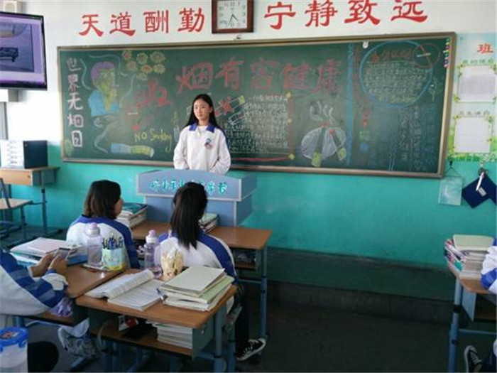 在班會上,首先由班主任老師結(jié)合宣傳片講解吸煙的一系列危害,隨后同學(xué)們踴躍上臺發(fā)言,發(fā)表了自己對于吸煙的看法。有的同學(xué)說“不能為了一時逞能,覺得抽煙特別帥而傷害了自己的身體”,“不能為了對抗父母就用抽煙的方式來發(fā)泄自己的不滿,久而久之傷害的是自己和家人“,有的同學(xué)以親身經(jīng)歷談吸煙的危害,還有不少同學(xué)紛紛表示想把這次的控?zé)熜麄髌瑤У郊依铮o自己的親人看看,讓他們也直觀的了解抽煙會給我們造成多大的傷害,帶來多少種疾病,力爭做到自己不抽煙的同時,也帶領(lǐng)家人走上“戒煙道路”,創(chuàng)造良好的生活環(huán)境。