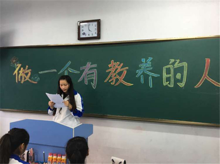 大家踴躍發(fā)言,講述了自己經(jīng)歷過(guò)的以及聽過(guò)的真實(shí)事例和歷史故事。同學(xué)們著重討論了我們身邊有關(guān)習(xí)慣修養(yǎng)的例子,比如校園內(nèi)個(gè)別同學(xué)亂扔垃圾、食堂打飯時(shí)插隊(duì)、大聲喧嘩等等,大家都深刻地意識(shí)到這些行為對(duì)校園和個(gè)人的惡劣影響。文藝委員馬力丹為大家朗讀了張靂平校長(zhǎng)為每個(gè)班級(jí)印發(fā)的小文章——《教養(yǎng)的味道》,同學(xué)們聽完文章陷入了深深的反省與思考。