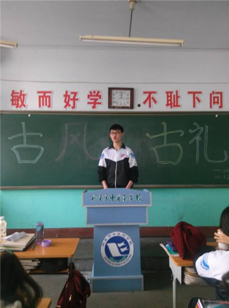 2015年11月23日下午3點(diǎn),2015級(jí)8班全體師生在311教室組織開(kāi)展了以“禮”從何來(lái)為主題的主題班會(huì)。在班級(jí)團(tuán)支部書(shū)記李佳欣的組織下,主題班會(huì)正式開(kāi)始,主持人婁家毓首先宣布了本次班會(huì)的目的:希望通過(guò)此次班會(huì),使同學(xué)們知道“禮”從何來(lái),我們應(yīng)該怎樣以禮相待,通過(guò)日常生活、學(xué)習(xí)、交往把里“禮”傳遞出去,做有“禮”的好學(xué)生。