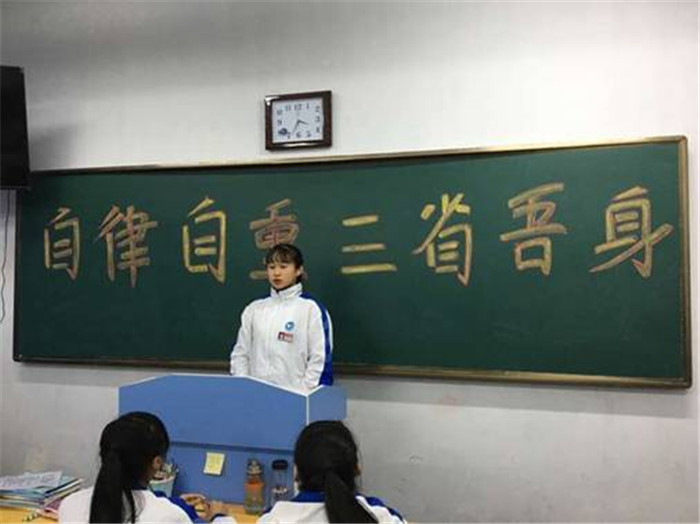班會(huì)上,班長莊丹丹首先向大家介紹了“三省吾身”的出處——《論語·學(xué)而》曾子曰:“吾日三省吾身,為人謀而不忠乎?與朋友交而不信乎?傳不習(xí)乎?”由這句話引申出多次自覺反省檢查自己的涵義。隨后,班級同學(xué)紛紛走上前來,侃侃而談自己身邊發(fā)生的一些問題的看法。對于日常風(fēng)紀(jì)檢查和扣分,班主任也進(jìn)行了重點(diǎn)闡述和引導(dǎo)。