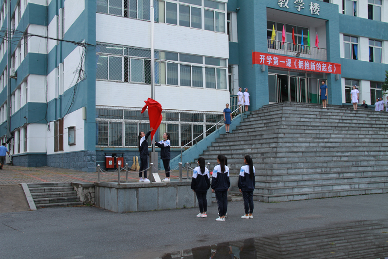 丹東市中醫(yī)藥學(xué)校于家校區(qū)第一次升旗儀式 開學(xué)第一課《擁抱新的起點(diǎn)》