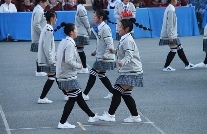 我們的汗水潑灑在校園的土地上,我們嘹亮的口號聲傳遍校園的每一個角落,我們的目的很明確:讓全校的老師同學(xué)們都知道19.5班是一個充滿活力的團結(jié)的班集體。在走進賽場的過程中我們十分緊張,小心臟差不多都要跳出來了。我們不停的安慰自己:要放松,要放松。就這樣,我們成功的做完了所有動作,展示出我們班的精神風(fēng)采。
